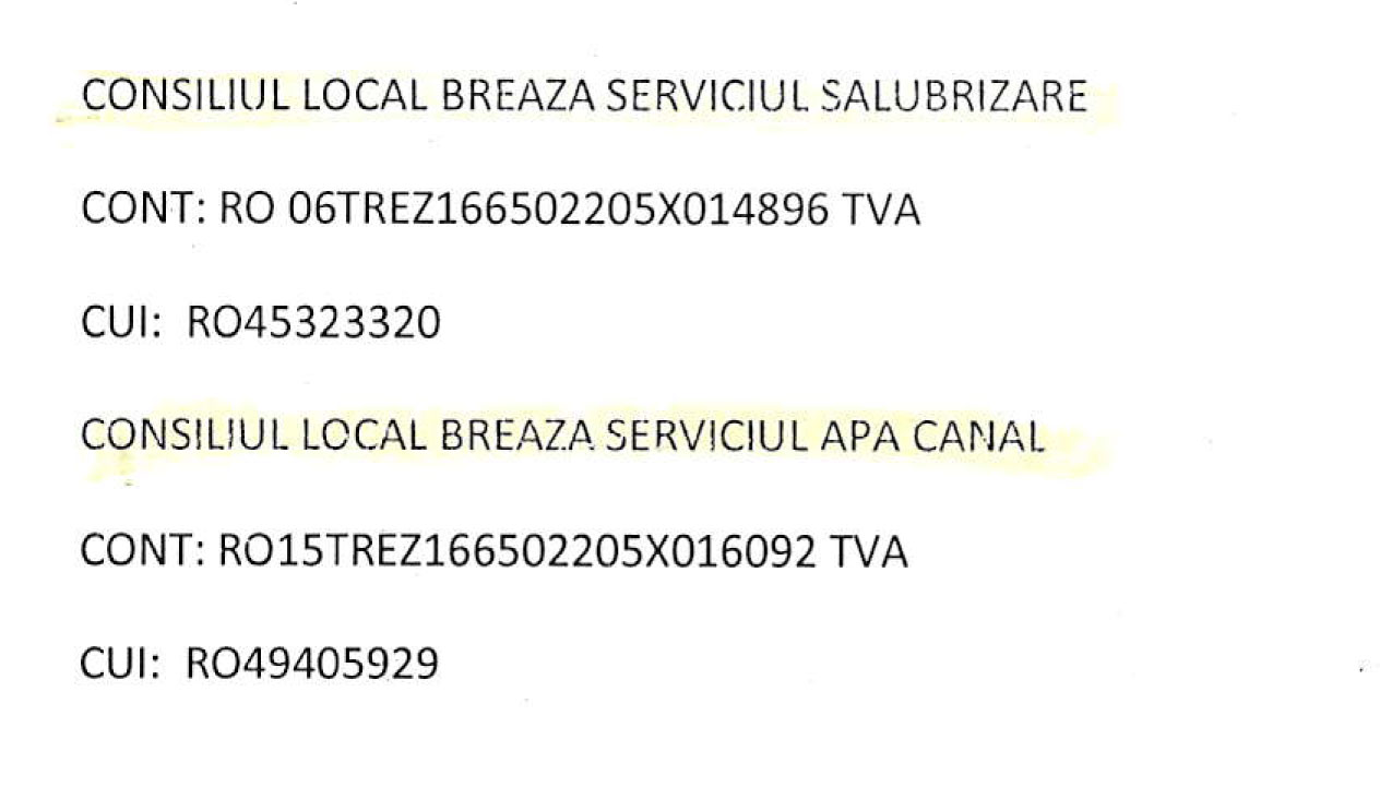 Conturi trezorerie, comuna Breaza – plăți impozite