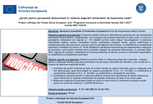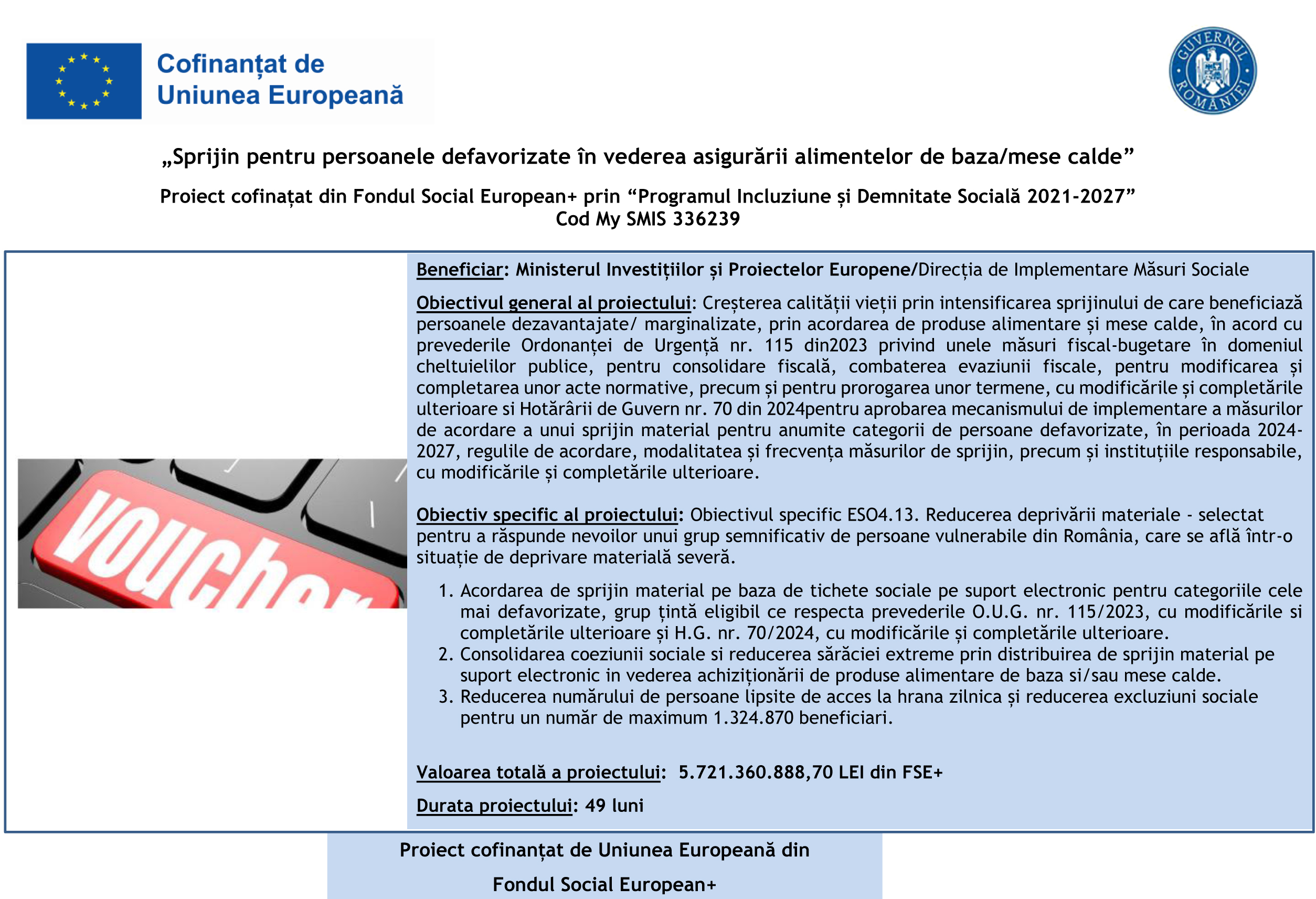 Beneficiar: Ministerul Investițiilor și Proiectelor Europene/Direcția de Implementare Măsuri Sociale